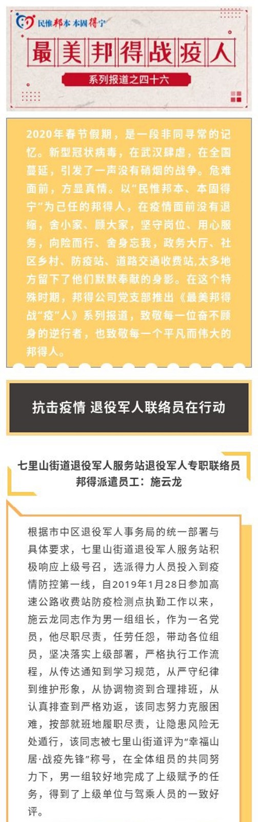 最美邦得戰(zhàn)“疫”人—— 系列報(bào)道之(四十六)