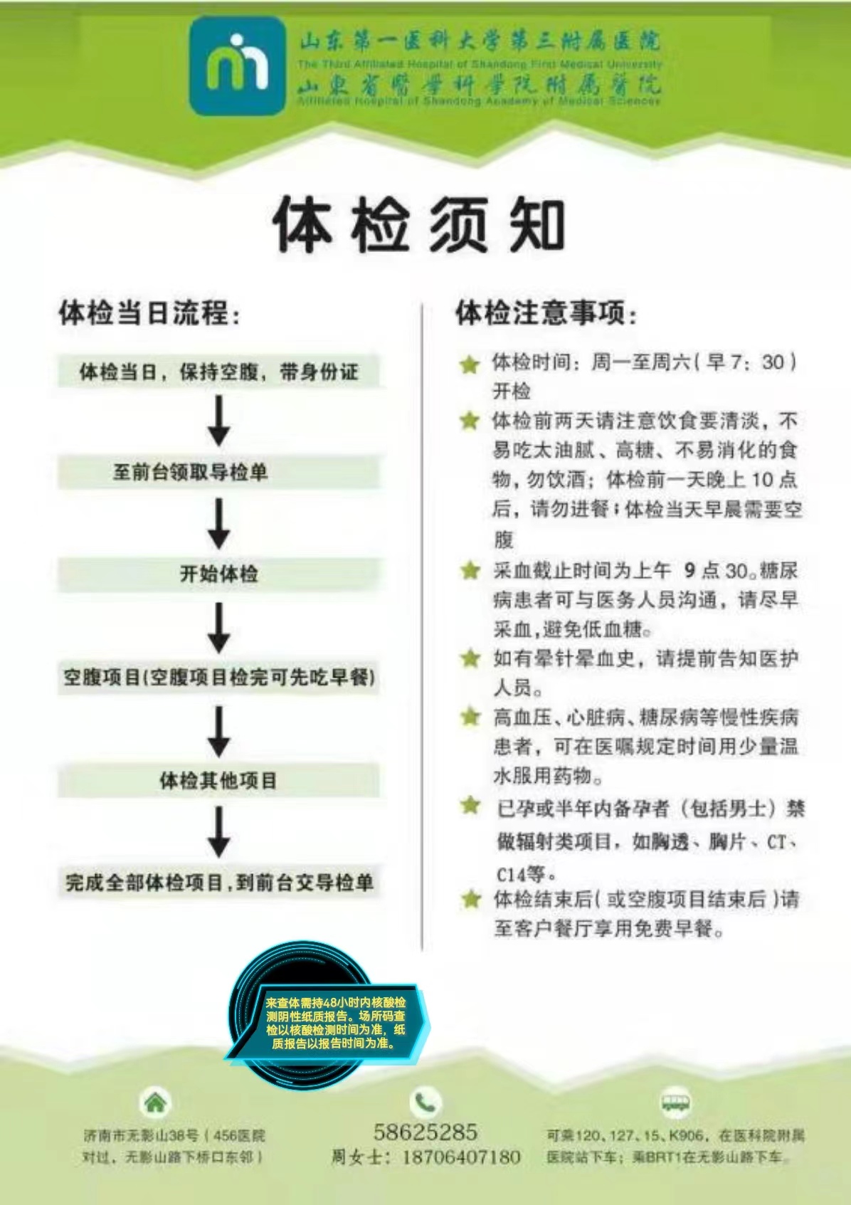 (二)體檢地點:山東省醫學科學院附屬醫院體檢中心(位置:濟南市無影山38號(456醫院對面)1號樓查體中心);